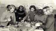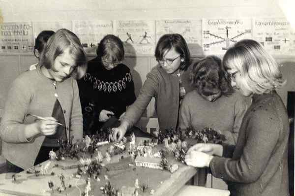 Tällä sivulla esitellään koulun oppilaan Helena Hyttisen puuveistoksia sekä grafiikkakuva isästään. Lisäksi kuvissa esitellään musiikki- ja näytelmäharrastusta sekä oppilaiden käsitöitä.
